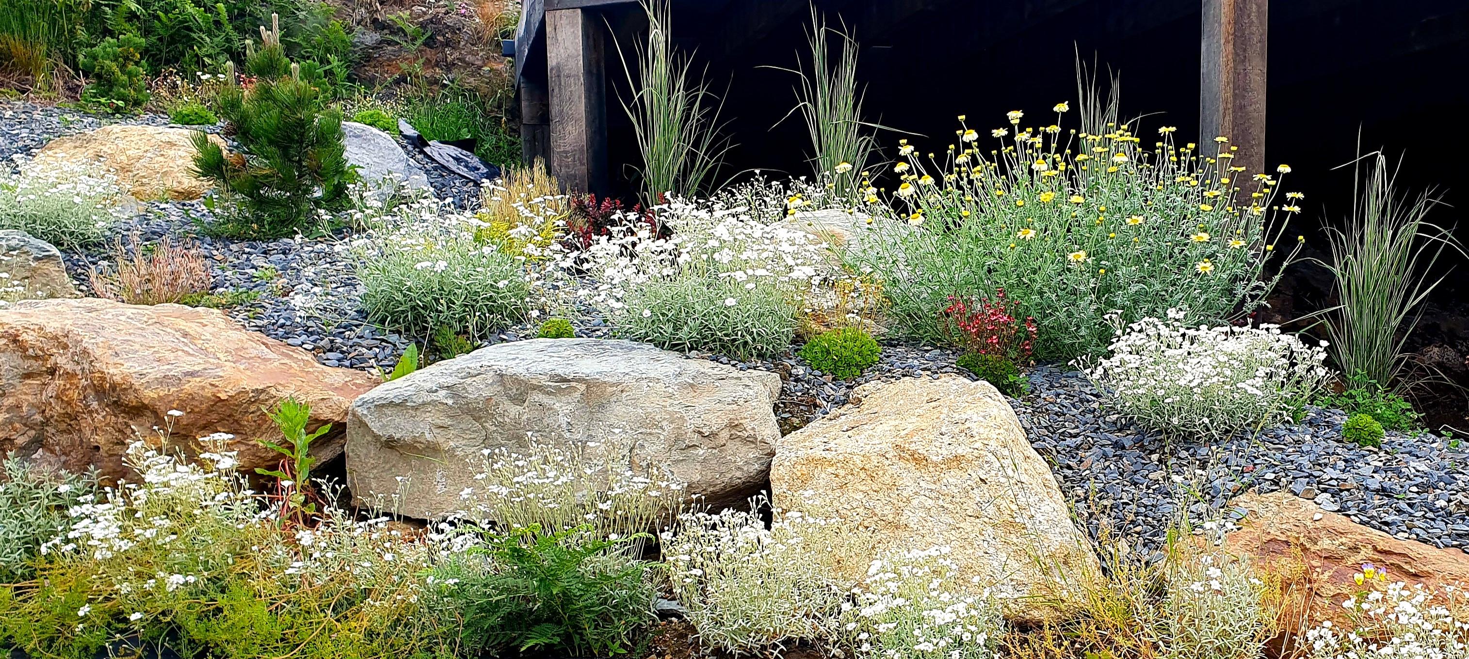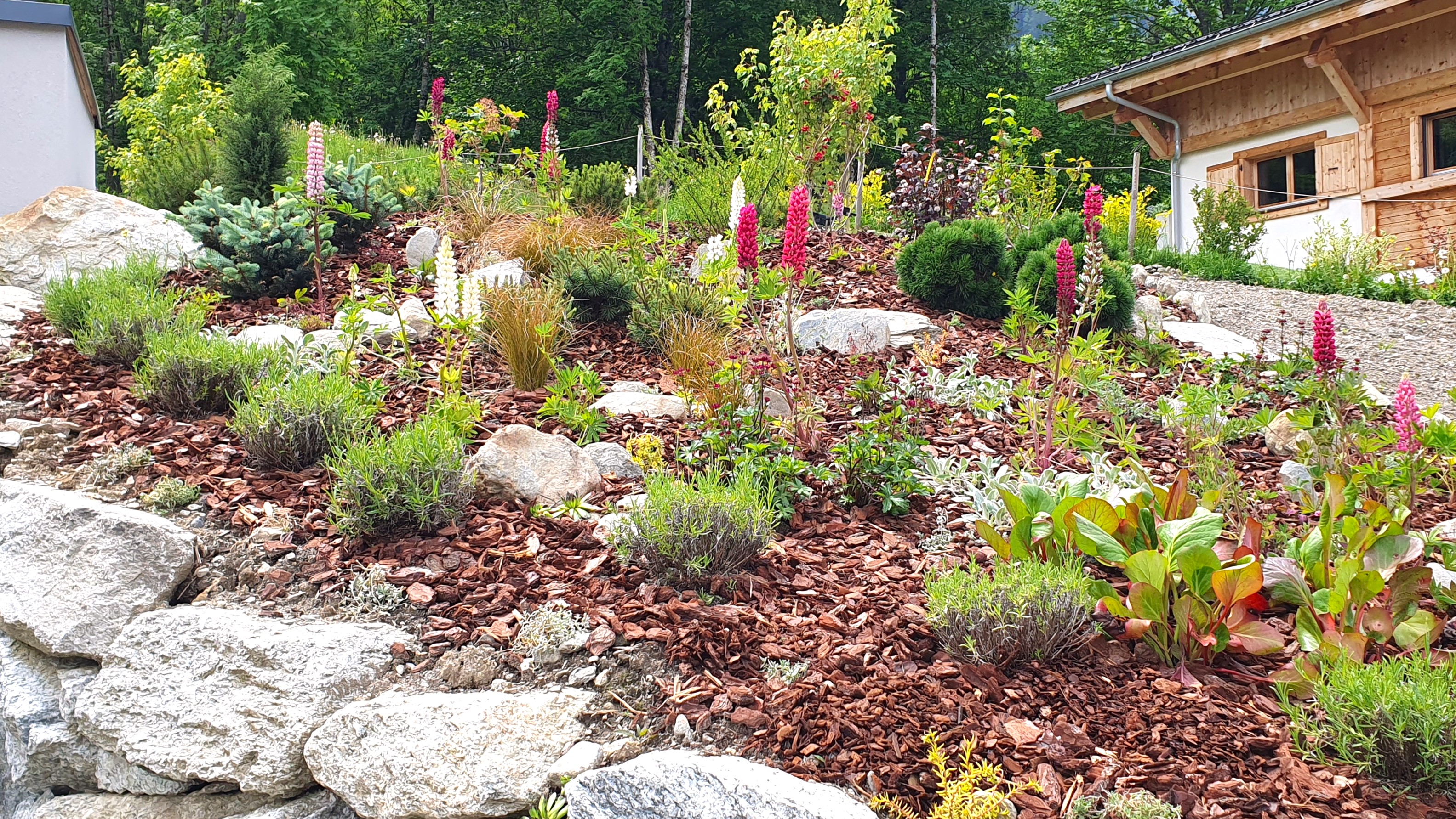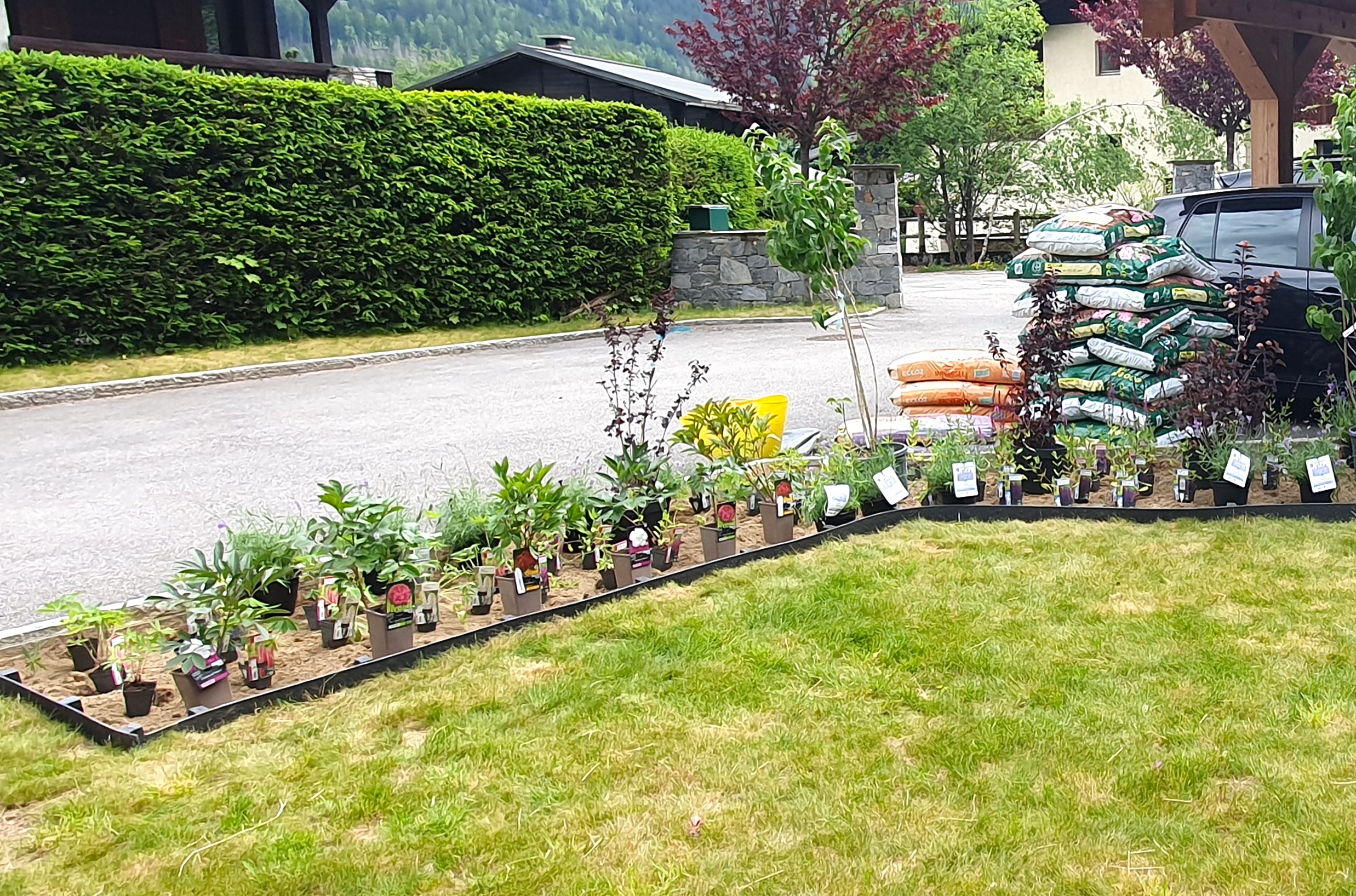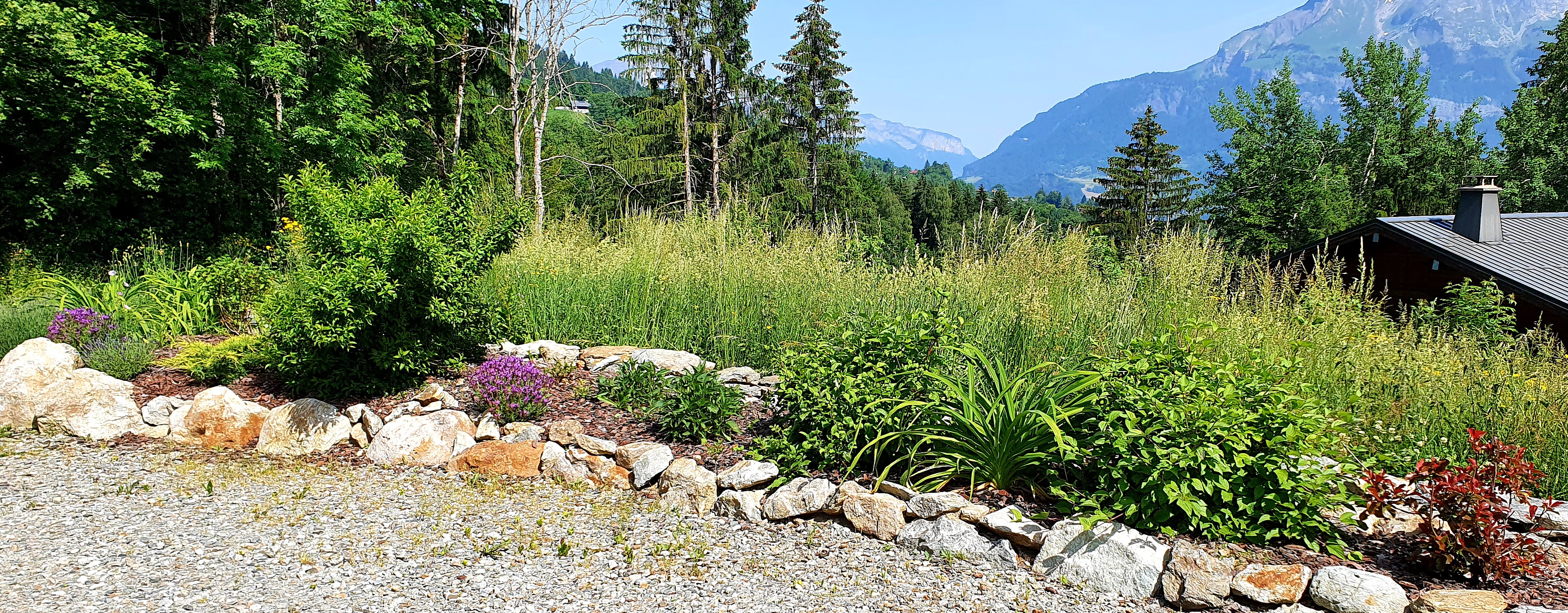 I work with a landscaping company based in the Chamonix Valley that can provide hard landscaping for a new garden design. I provide the concept alongside them with drawings and design ideas. I will discuss planting options with you, draw up plant lists, arrange a devis for the cost of the plants with my supplier, and coordinate delivery, unloading, and all the planting.